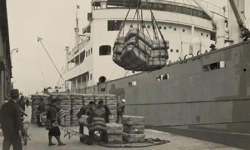 (Cách đưa hàng hóa lên tàu đầu thế kỷ 19 và 20 - Ảnh: Sưu tầm)