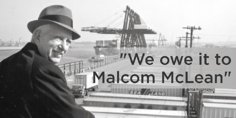 Malcolm McLean (1913–2001) đến từ Bắc Carolina tốt nghiệp trung học năm 1931, sau đó ông làm việc trong vài năm để mua cho mình một chiếc xe tải cũ. Năm 1934, McLean thành lập công ty vận tải của riêng mình và nhanh chóng sở hữu 5 chiếc xe sẵn sàng vận chuyển.