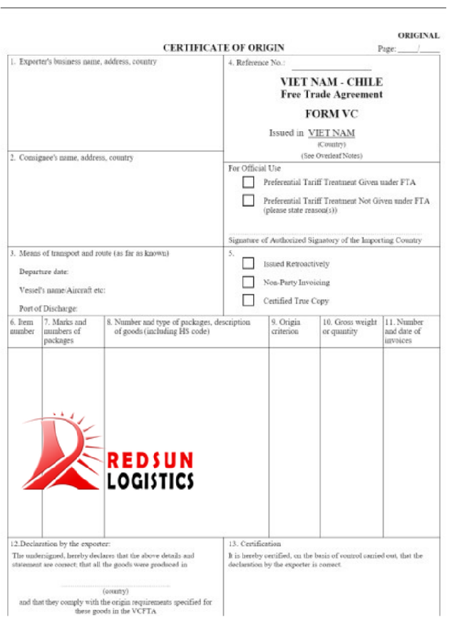Trên đây là một số thông tin cơ bản về Hiệp định thương mại tự do Việt Nam – Chile (VCFTA). Để biết thêm thông tin về các vấn đề liên quan đến Thủ tục hông quan hàng hóa, cước vận chuyển và các dịch vụ liên quan, vui lòng liên hệ REDSUN để được tư vấn cụ thể chi tiết hơn.