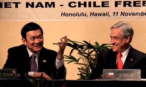 Hiệp định thương mại tự do (FTA) Việt Nam – Chile được đàm phán từ tháng 10/2018 và được ký kết ngày 11/11/2011 tại Hawaii (Mỹ). Tuy nhiên, vì thủ tục phê chuẩn mất nhiều thời gian nên Hiệp định có hiệu lực từ ngày 1/1/2014.